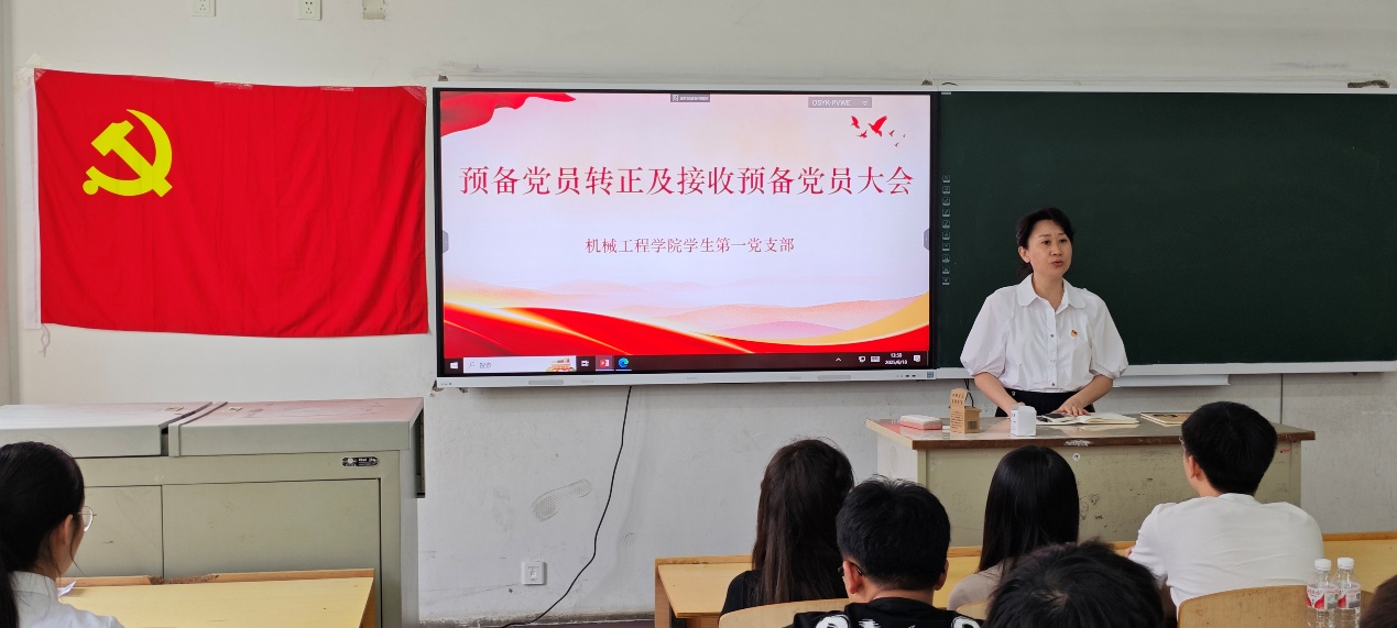 党总支副书记郑雪莲作了总结发言,对本次接收的19名预备党员和按期转正的18名同志表示祝贺,对为学院发展一直默默奉献的全体党员表示感谢。并提出了三点希望:一是希望全体党员坚守初心,践行“为人民服务”宗旨,争做合格党员;二是希望全体党员在学习生活中充分发挥先锋模范作用,用实际行动兑现入党时的铮铮誓言;三是希望全体党员以中华民族伟大复兴为己任,以“功成必定有我”的责任担当肩负起时代使命。