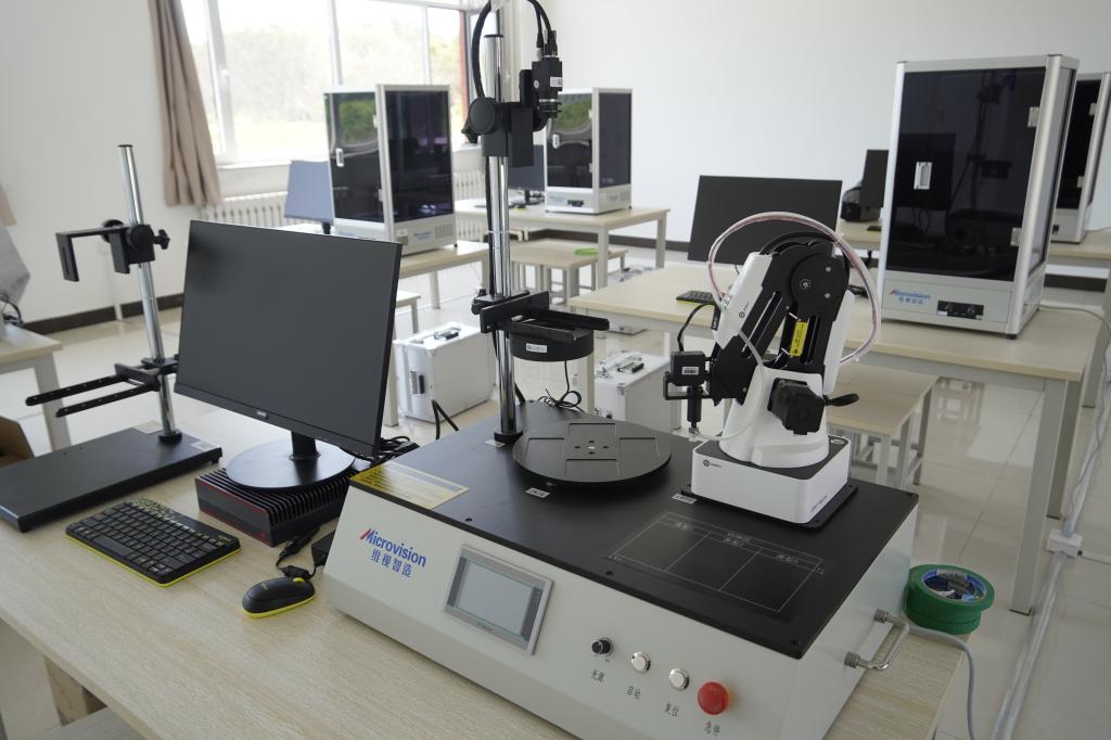 视觉智能检测实训室拥有MV-SVNDP智能机器人视觉引导开发平台1套; MV-VS1000机器视觉图像处理实验平台4套;MV-TOSEDP高精密自动影像测量仪1套。学生可进行机器视觉测量与机器人技术,深度学习与感知智能技术,视觉深度识别与技术学习研究。构造实训课程、毕业设计与科研工作相结合的实训培养模式,鼓励学生创新研究,培养学生成为机器视觉智能新技术创新型宽口径技术人才,扩展智能机械工程与AI技术的应用能力。