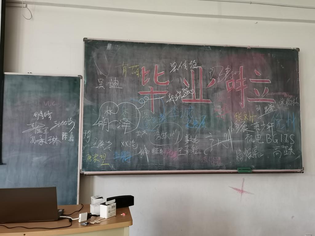 班主任发言结束后,大家将自己的名字写在了黑板上,随后一起观看了班委会精心制作的毕业纪念视频,包含了班级四年以来一起参加、组织的各项活动的点点滴滴,一起回忆往昔,仍觉历历在目。