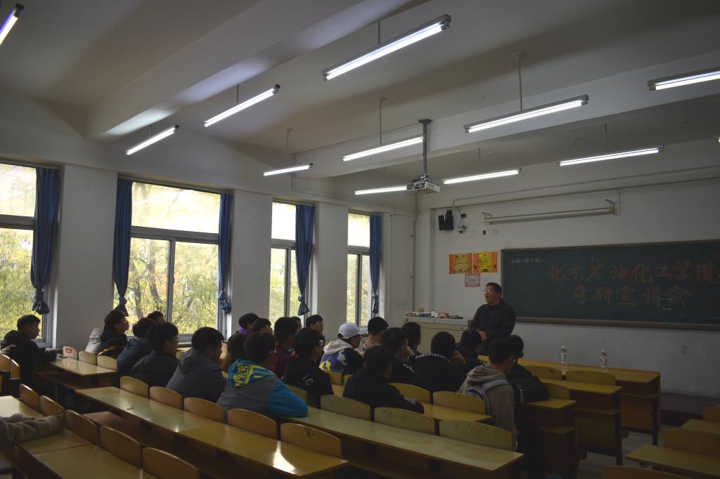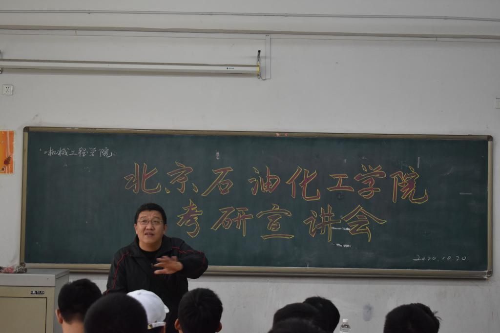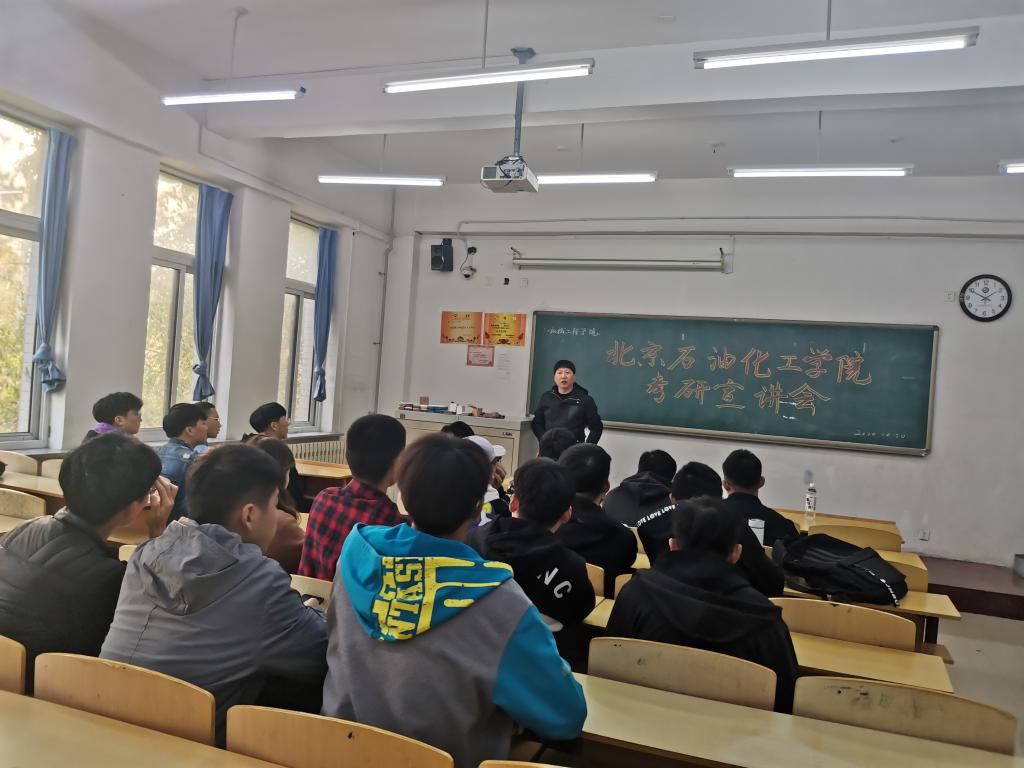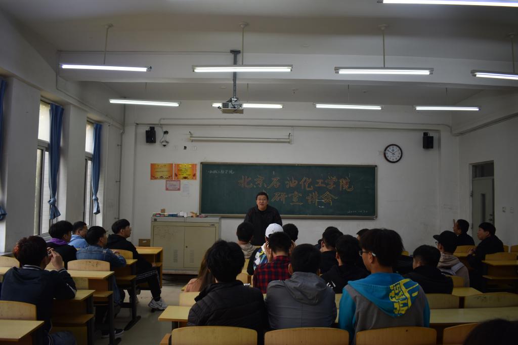 宣讲伊始,孙丰书记对本次到场老师表示热烈欢迎,并强调了考研的重要性。接下来由刘远超老师,为在场的大三同学们介绍考研的一些重要内容,以及北京石油化工学院的有关介绍。