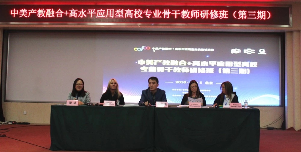 2018年12月5日至7日,我校9名骨干教师参加了在北京城市学院举行的中美产教融合+高水平应用型高校专业骨干教师研修班(第三期)。此次活动由中国现代教育研修中心主办,北京金蓝无忧国际教育科技有限公司承办。中国现代教育研修中心培训部副部长答邦崎,布劳沃德学院英语系副院长Andrea Apa博士、工商管理副院长Jeanne Christ博士、会计学教授Cathileen Montesarchio博士,北京金蓝无忧国际教育科技有限公司课程总经理黎洁,以及来自全国各地高等院校优秀骨干教师出席开班仪式。